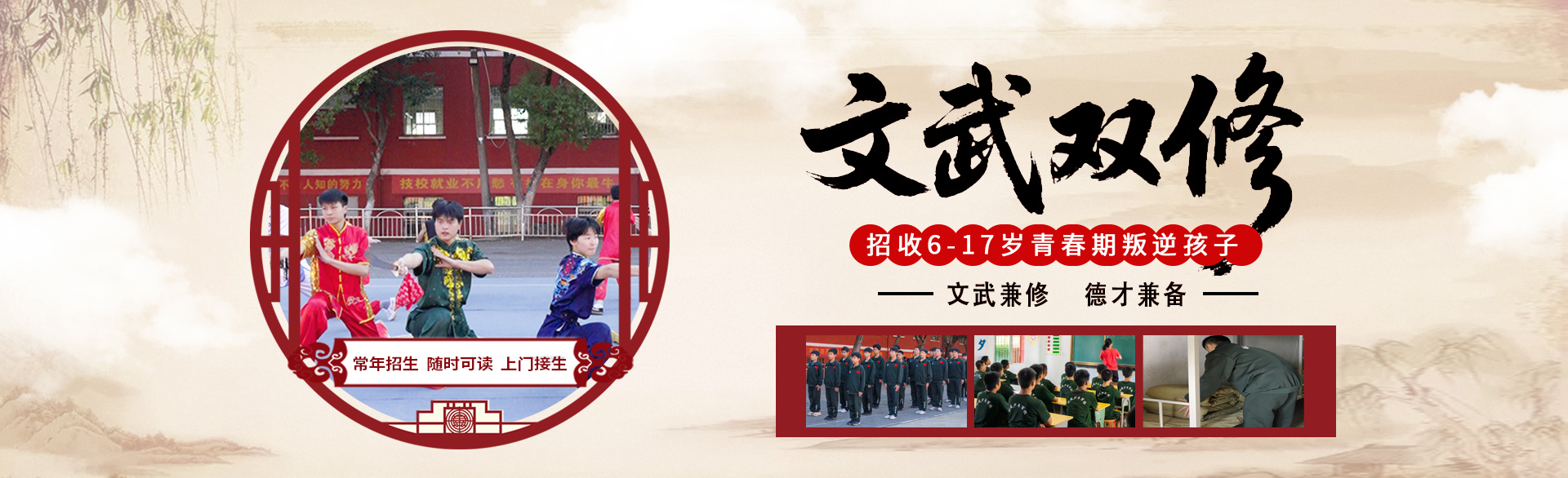 文武双修,因材施教,学习文化课,培养学生武术特长增强自信、自立、自强。